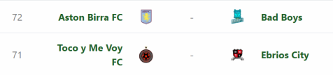 Por su parte, Ebrios City buscará escalar posiciones en la tabla enfrentando a Toco y Me Voy FC, equipo que se encuentra apenas un escalón por encima.